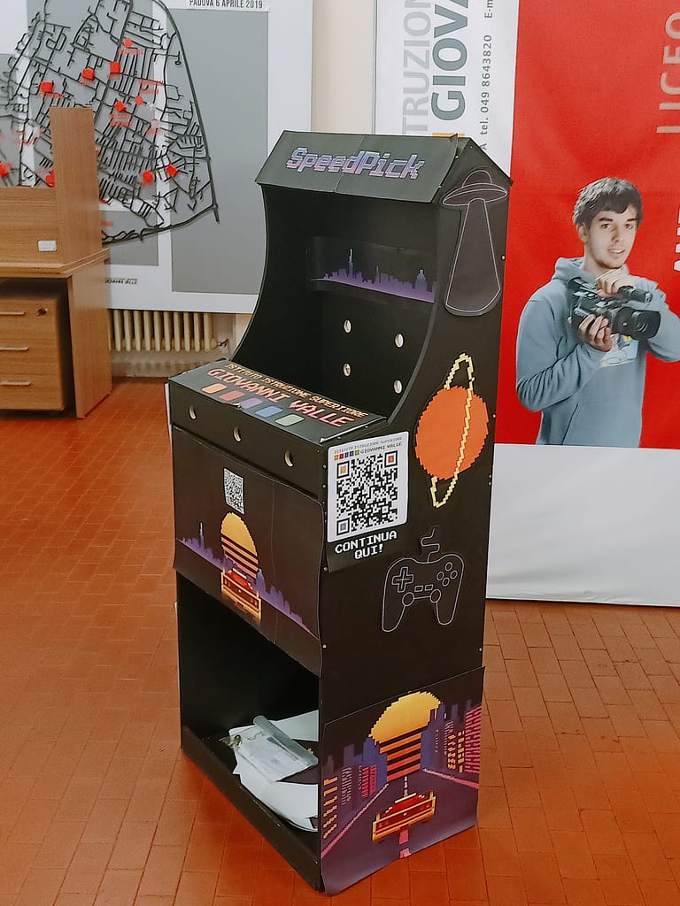 Speedpick is a serious game developed during a workshop that we held at the Valle Institute in Padua. The students developed the game idea, composed and recorded the music, produced the graphic assets, animations, and copy, and even built a retro gaming-style cabinet. The goal of the game is to help a future student choose the most suitable educational path based on their personality.